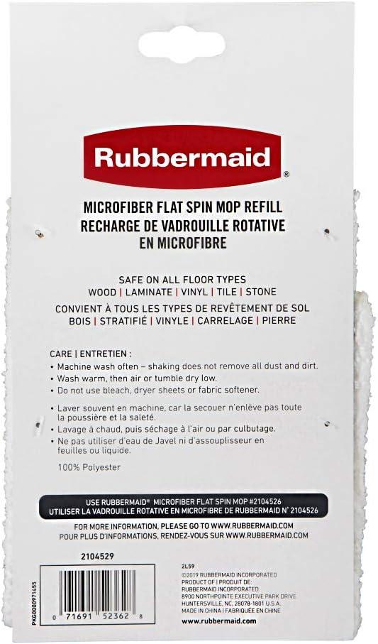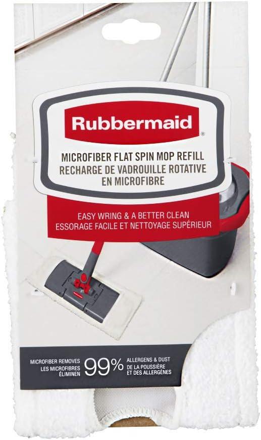 Rubbermaid Microfiber Flat Spin System Mop Head Refill/Replacement, White, Reusable Mop for Floor Cleaning, Tile/Wood/Vinyl/Stone