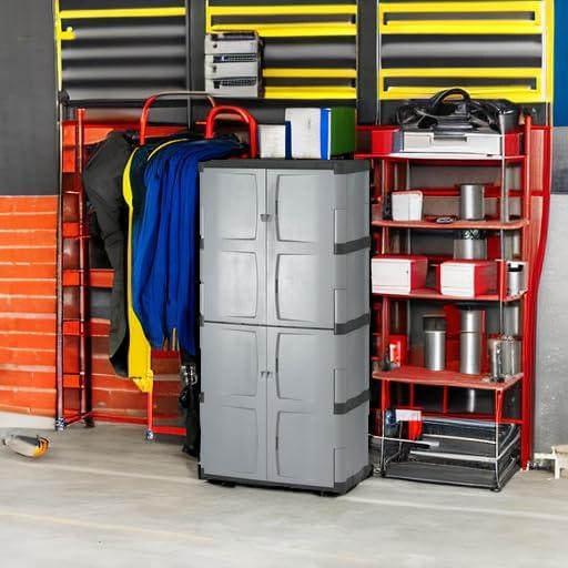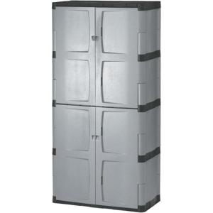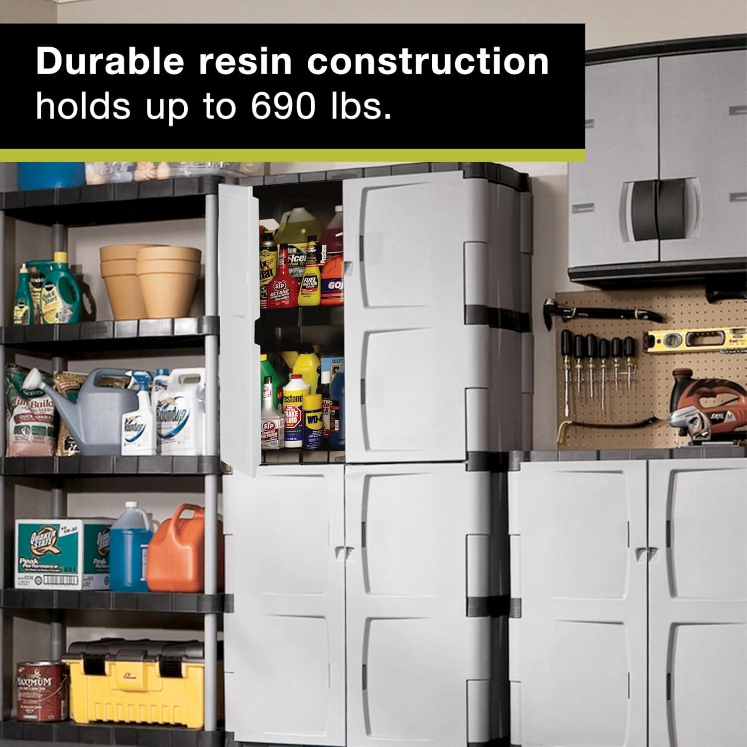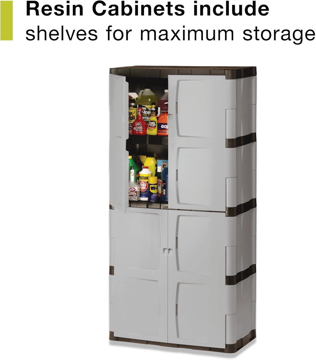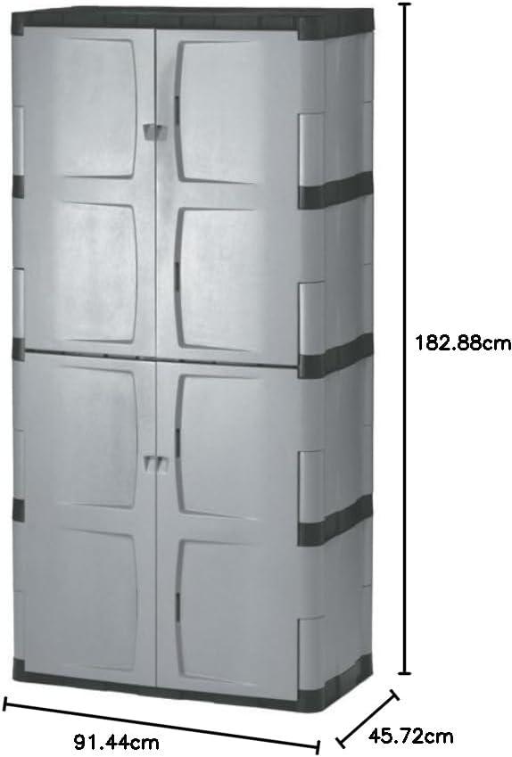 Rubbermaid Freestanding Storage Cabinet with Doors 18″D x 36″W x 37″H Medium Gray/Black Two-Shelf Lockable Cabinet for Indoor/Outdoor/Garage Storage for Garden Tools/Lawn Care Accessories(Large)