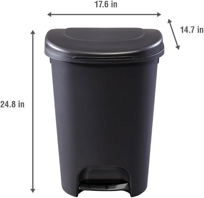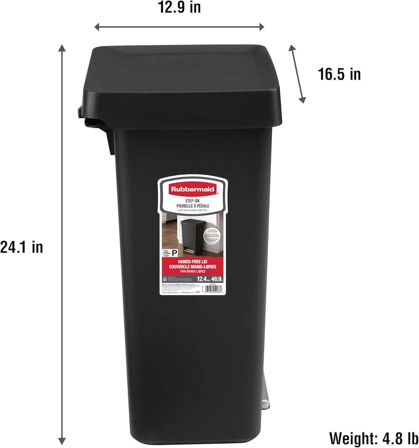 Rubbermaid Classic 13 Gallon Premium Step-On Trash Can with Lid and Stainless-Steel Pedal, Black Waste Bin for Kitchen/Home/Office/Garage(Black)