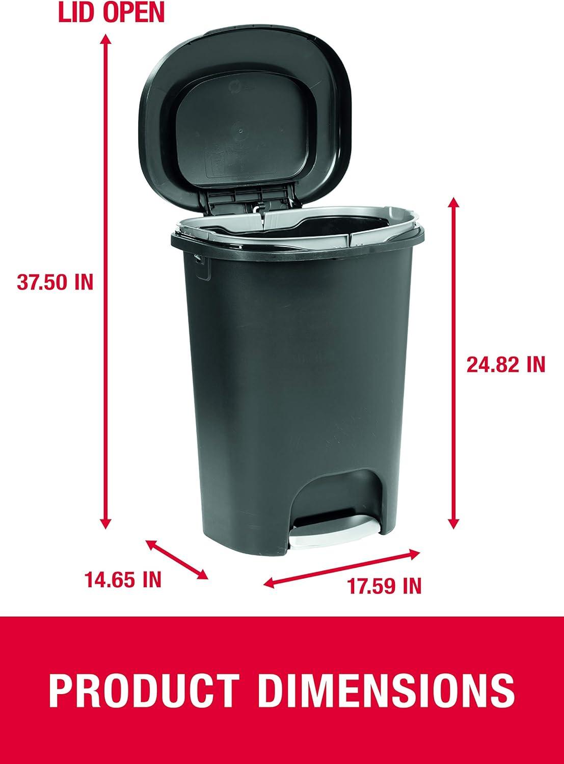 The Rubbermaid 13G Classic Black Step-On offers a touch-free, convenient solution for your kitchen waste. Its stainless-steel foot pedal enables hands-free operation and complements your kitchen appliances. The Linerlock™ bands secure liner bags, preventing slips and messes. While perfect for kitchen waste, this versatile and durable container can also be used for pet food or recycling.