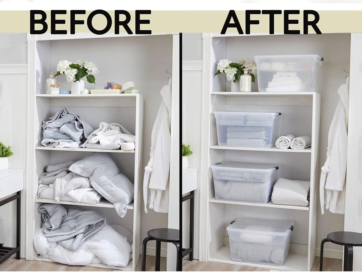 Rubbermaid Cleverstore 42 Quart Stackable Plastic Storage Bin with Lids for Garage, Closet, and Classroom, Clear, 4 Pack(74 Qt – 4 Pack w/ Trays)