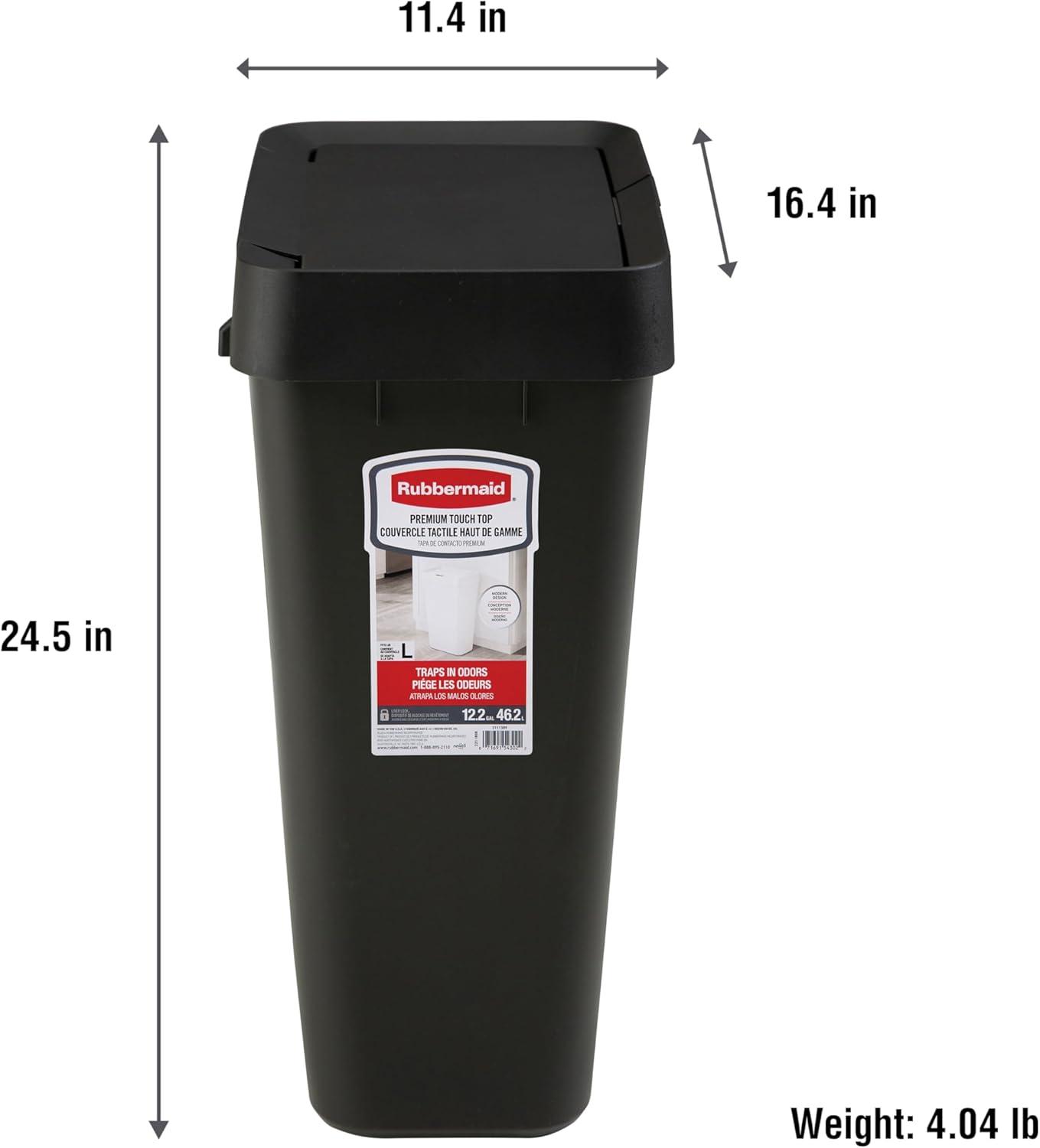 Rubbermaid Commercial Products Touch Top Trash Can/Wastebasket with Lid, 13-Gallon, Small Black Garbage Bin for Home/Kitchen/Bathroom/Bedroom/Office(Black)