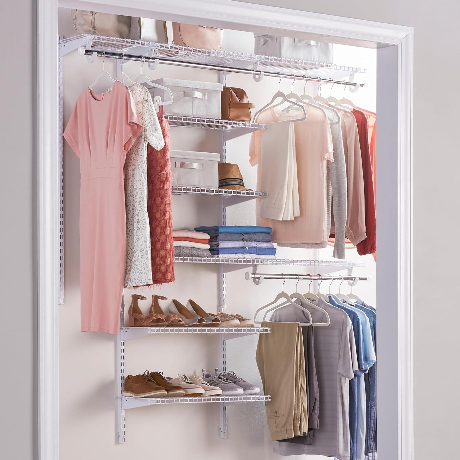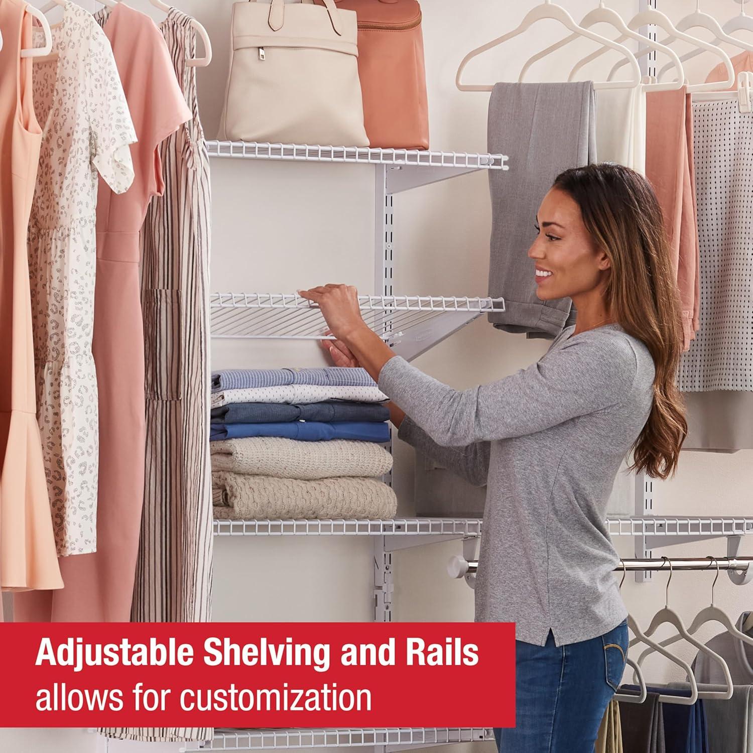 Rubbermaid Configurations Deluxe Custom Closet Kit 3-6 Ft. Adjustable Metal Wire Shelving White Finish Expandable Organization System Hardware Included for Home Closet/Pantry/Laundry/Mudroom(White)