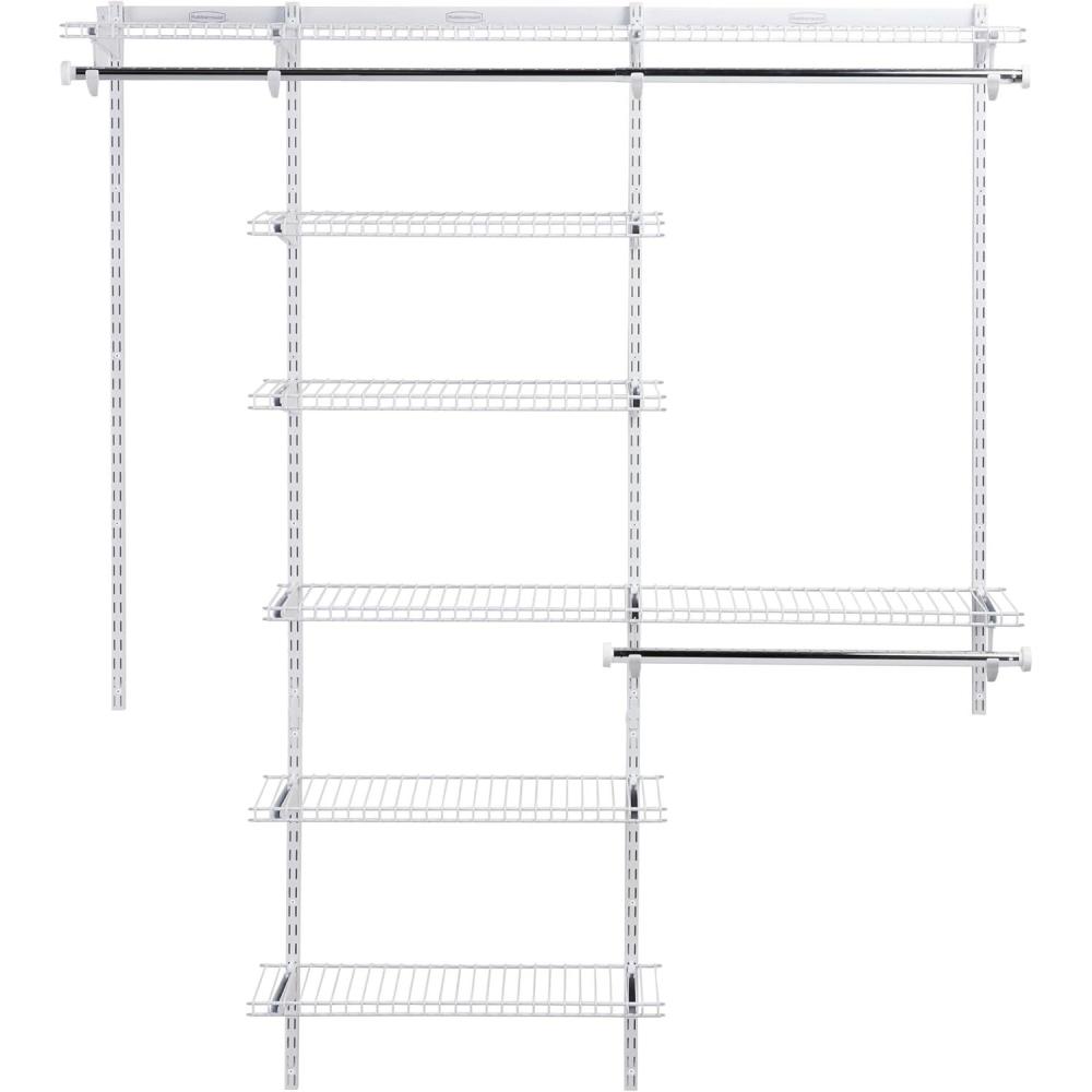 Organize your closet exactly the way you want with the Rubbermaid 3H88 White Configurations Three to Six Foot Deluxe Custom Closet Kit. This system can be customized, with no cutting required, to fit both walk-in and reach-in closet walls from three to six feet long. The included shelves and hang rods are adjustable for up to 10 feet of hang space and 18 feet of stacking space. With six more feet of shelf space than the Classic Custom Closet Kit, the Deluxe is the perfect system for storing folded sweaters, blankets, and other bulky items. Flexible features make it quick and easy to reconfigure your closet. And because all the pieces in the kit are constructed with a white epoxy finish, they will protect and store your clothes and other valuables for years to come.