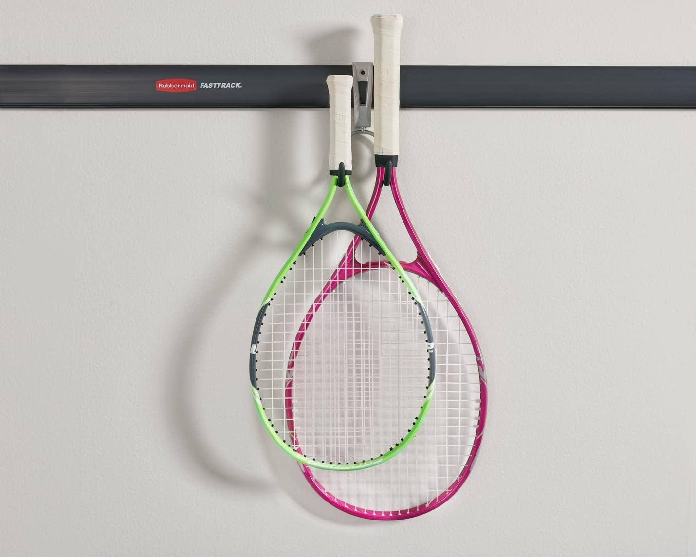 Great for storing shovels, rakes, brooms, and sports equipment, this wall-mount “S”-hook duo is a great way to clear up floor space in the garage. Tools can be inserted and removed with one hand for less hassle. And, the unit mounts easily to wall studs or to the Rubbermaid FastTrack rail (sold separately on along with a full line of FastTrack storage system components). Designed to hold up to 50 pounds, the hook is equipped with a cast aluminum gripper that snaps tightly into the FastTrack rail system for that particular mounting application. The hook is protected with a soft coating that won't scratch. And, it flips down flat against the wall out of the way when not in use. A satin nickel powder-coated finish won't rust, chip or crack for years of reliable storage.