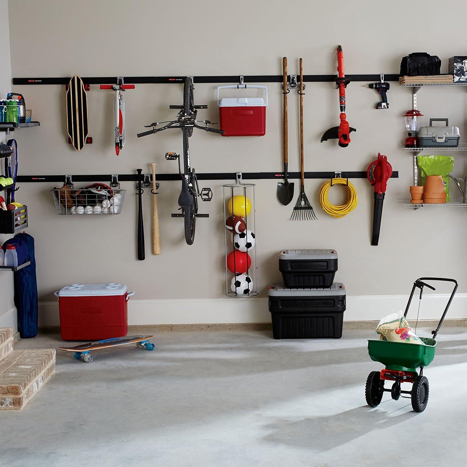 Great for storing shovels, rakes, brooms, and sports equipment, this wall-mount “S”-hook duo is a great way to clear up floor space in the garage. Tools can be inserted and removed with one hand for less hassle. And, the unit mounts easily to wall studs or to the Rubbermaid FastTrack rail (sold separately on Amazon.com along with a full line of FastTrack storage system components). Designed to hold up to 50 pounds, the hook is equipped with a cast aluminum gripper that snaps tightly into the FastTrack rail system for that particular mounting application. The hook is protected with a soft coating that won't scratch. And, it flips down flat against the wall out of the way when not in use. A satin nickel powder-coated finish won't rust, chip or crack for years of reliable storage. –Brian D. Olson