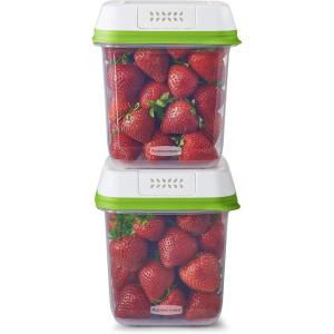 Rubbermaid FreshWorks Produce Saver keeps produce fresher longer. The FreshVent technology filter naturally regulates the flow of oxygen and carbon dioxide to to create the optimal environment for your fresh produce.. The filter lasts the lifetime of the container, with no refills needed. The elevated base lifts produce away from moisture and promotes proper airflow to prevent spoilage. The modular, space-efficient design allows for easy kitchen organization—bases nest inside each other and one lid fits multiple bases to keep cabinets tidy. These plastic containers are BPA-free and dishwasher-safe for easy care.