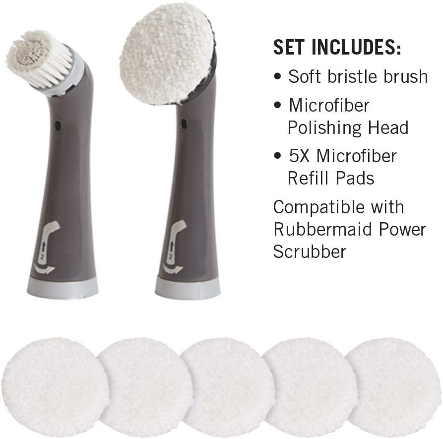 Rubbermaid Reveal Power Scrubber Attachable Soft Bristle & Velcro Head with 6 Microfiber Pads for Cordless Electric Battery Powered Scrub Brush Ideal for Shoes/Sneakers/Car Trim/Tires/Furniture(8 Piece Polish Kit)
