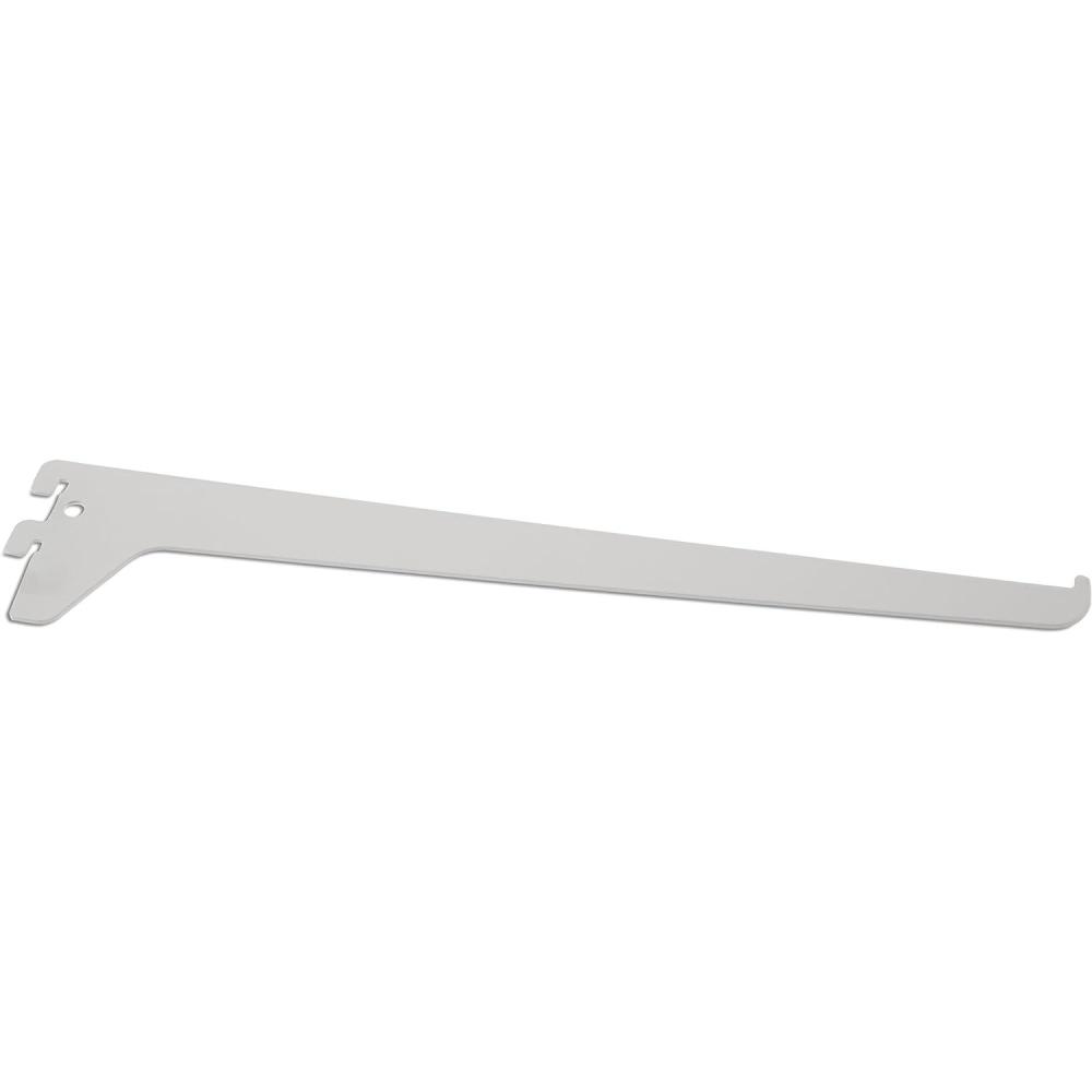 The Rubbermaid single track system 12-in. Bracket mounts to the Rubbermaid single track system uprights (sold separately). bracket is customizable and can be placed up or down to suit your unique storage and display needs. Made with durable epoxy finish, this bracket has a smooth finish and resists chipping and peeling. Easy to assemble, simply attach to uprights (sold separately). no tools needed.