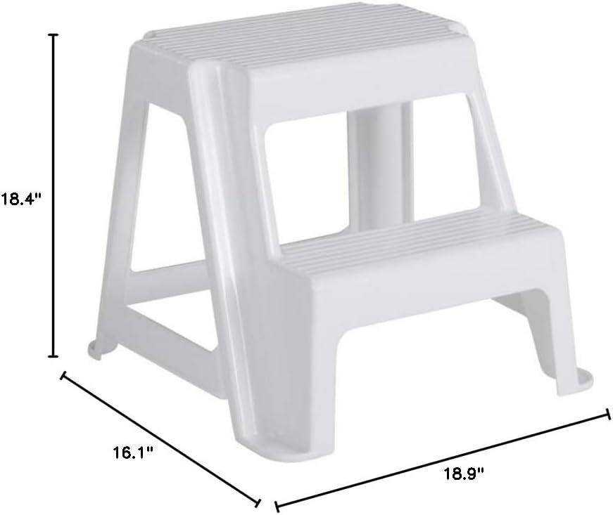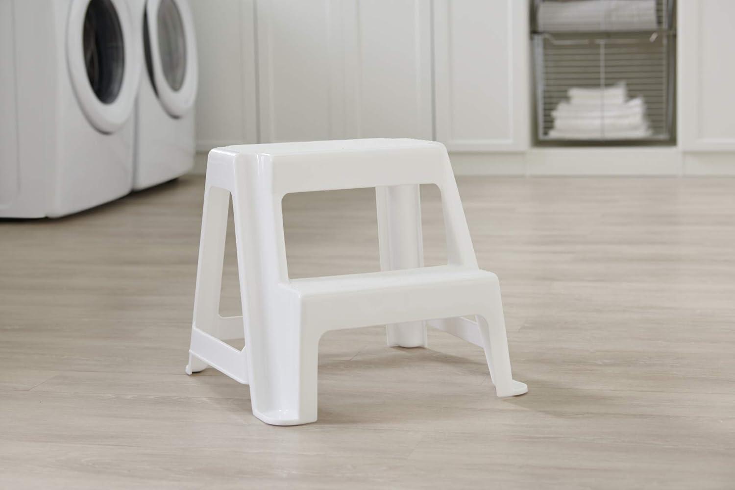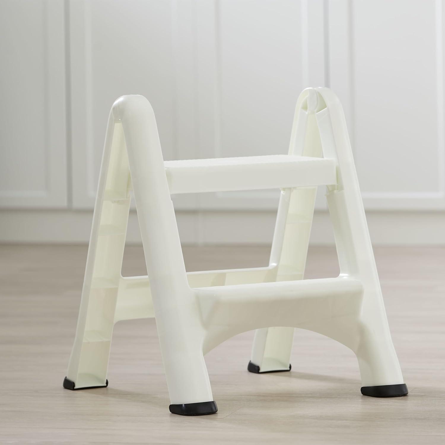 Rubbermaid Two-Step Folding Foot Stool 14-Inch High Gray 300-Pound Capacity Small Step Stool for Adults/Kids for Use in Library/Kitchen/Bathroom/Garage/Closet(White)