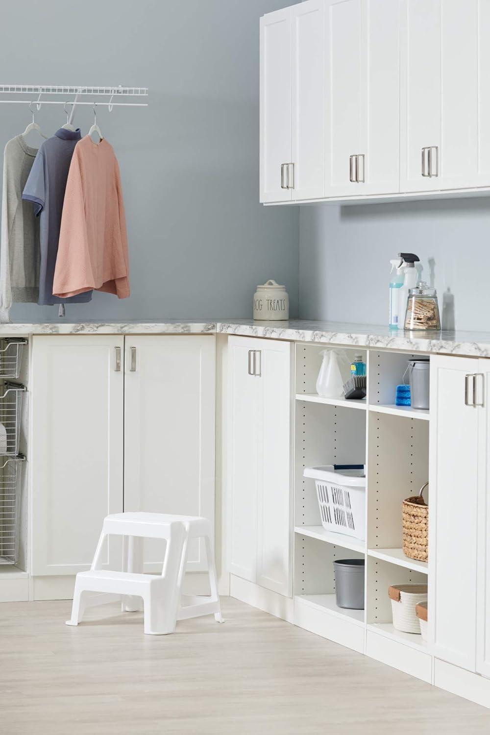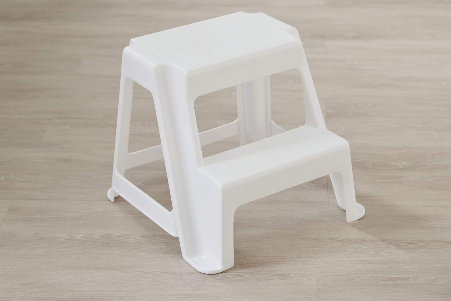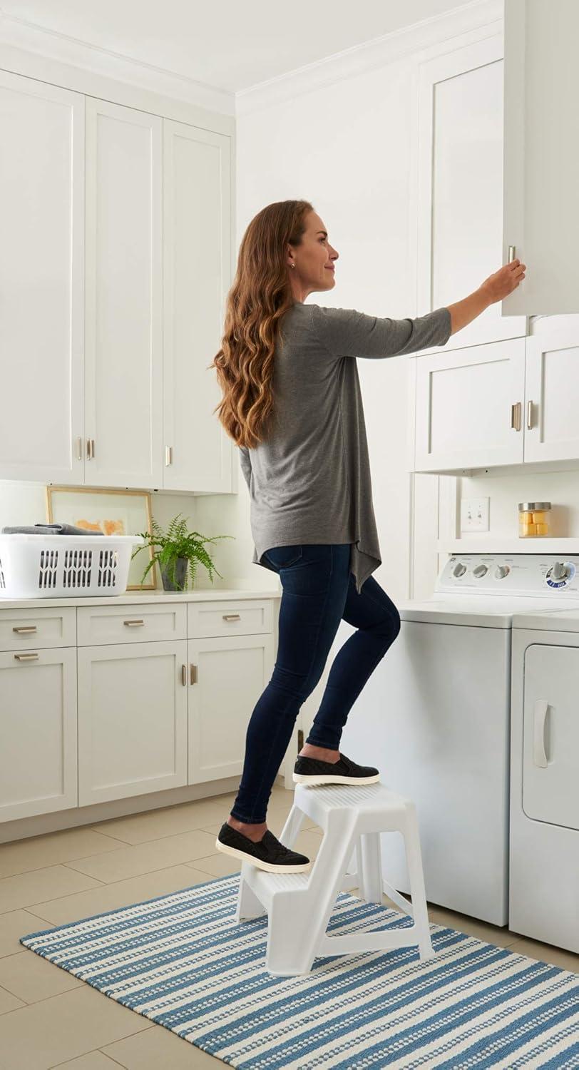 Rubbermaid Two-Step Folding Foot Stool 14-Inch High Gray 300-Pound Capacity Small Step Stool for Adults/Kids for Use in Library/Kitchen/Bathroom/Garage/Closet(White)
